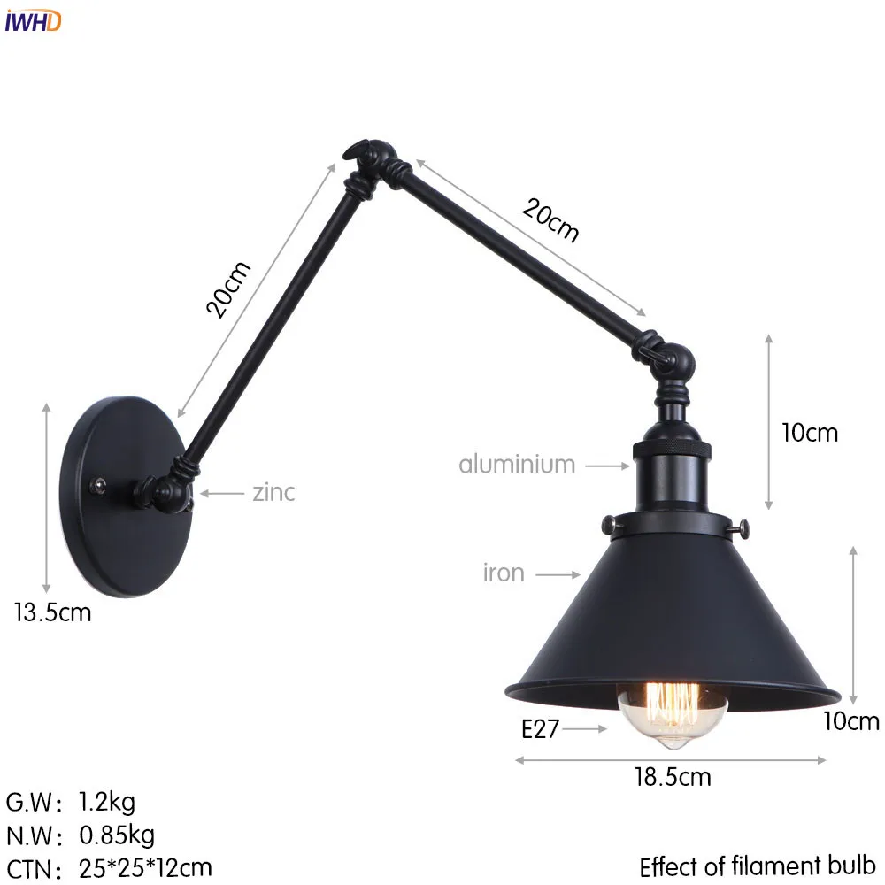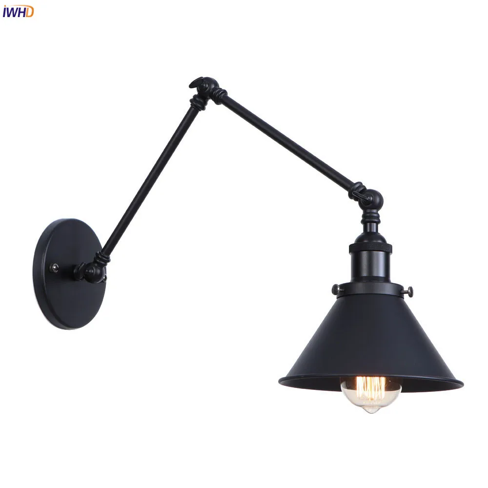 IWHD Adjustable Swing Long Arm Wall Lamp Vintage Home Lighting Bedroom Bathroom Retro Loft Industri