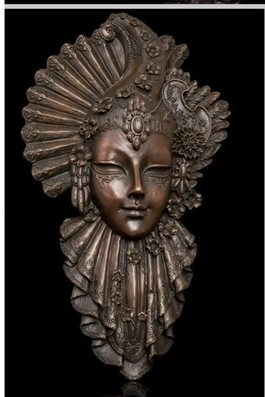 BEST QUALITY Decor Retro Vintage Fan Angel Figures Peacock mask sculpture handicraft pendant wall art rafts home