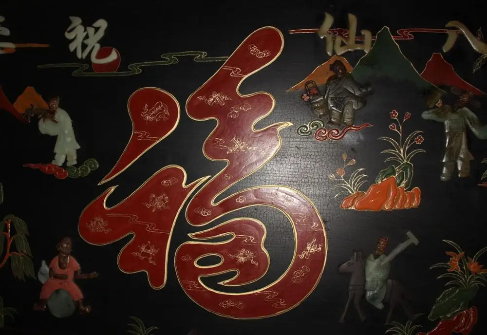 Huge Chinese Wood Painting 8 Immortal God Birthday Wall Handing Folding Screen