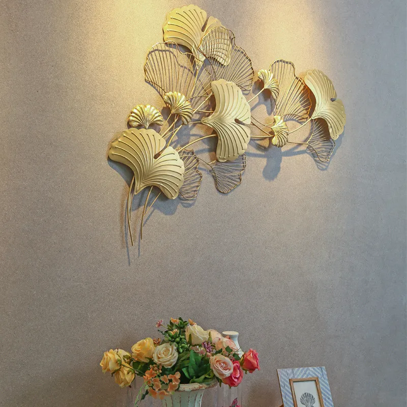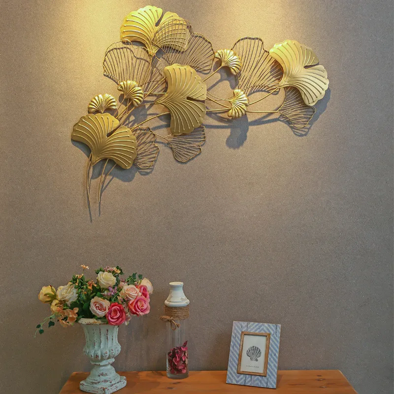 HOT Sale New Chinese Fashion Ginkgo Leaf 3D Wall Hanging Iron Wall Decor Bar Coffee Party Background Wall Ho