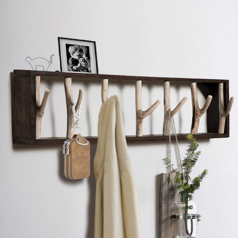 BEST QUALITY Twigs wooden coat hook living room creative wall hanger key holder clothes rack door porch stroage