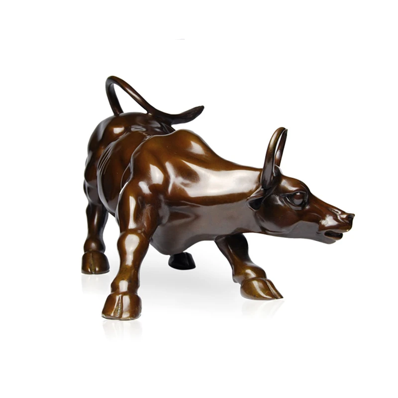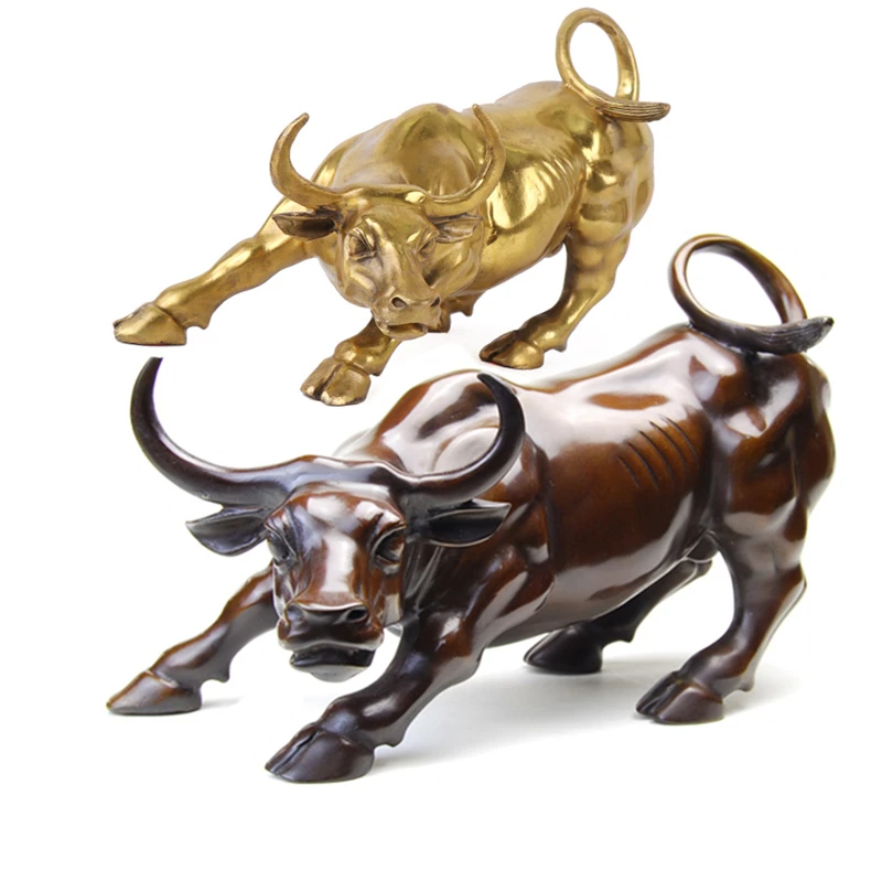 Wall Street Bronze Fierce Bull OX Statue Golden Metal Sculpture Crafts Ornament Home Decoration Acc