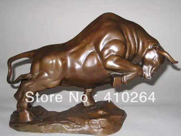Shipping Medium size Bronze coffee Wall Street Fierce Bull OX Figure Statue 9"Long discount 30%