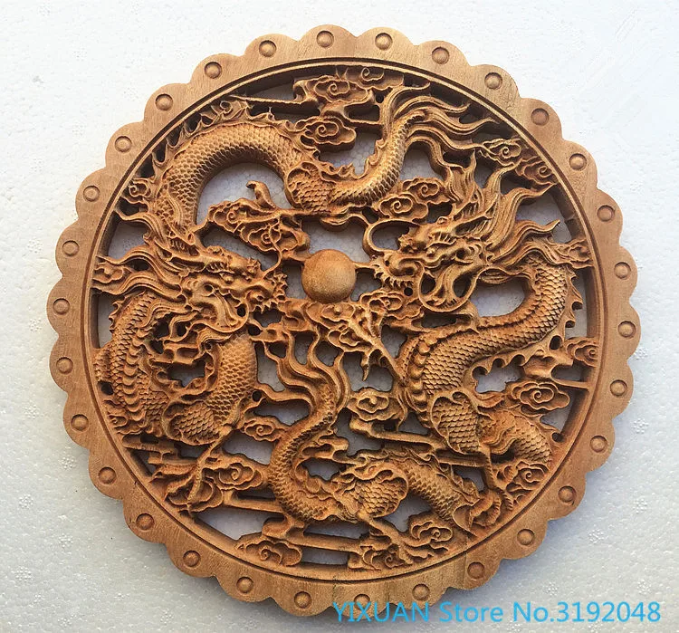 REVIEW TOP SELLER Double dragon playing pearl round wood carvings camphor solid wood carving crafts Chinese style hol